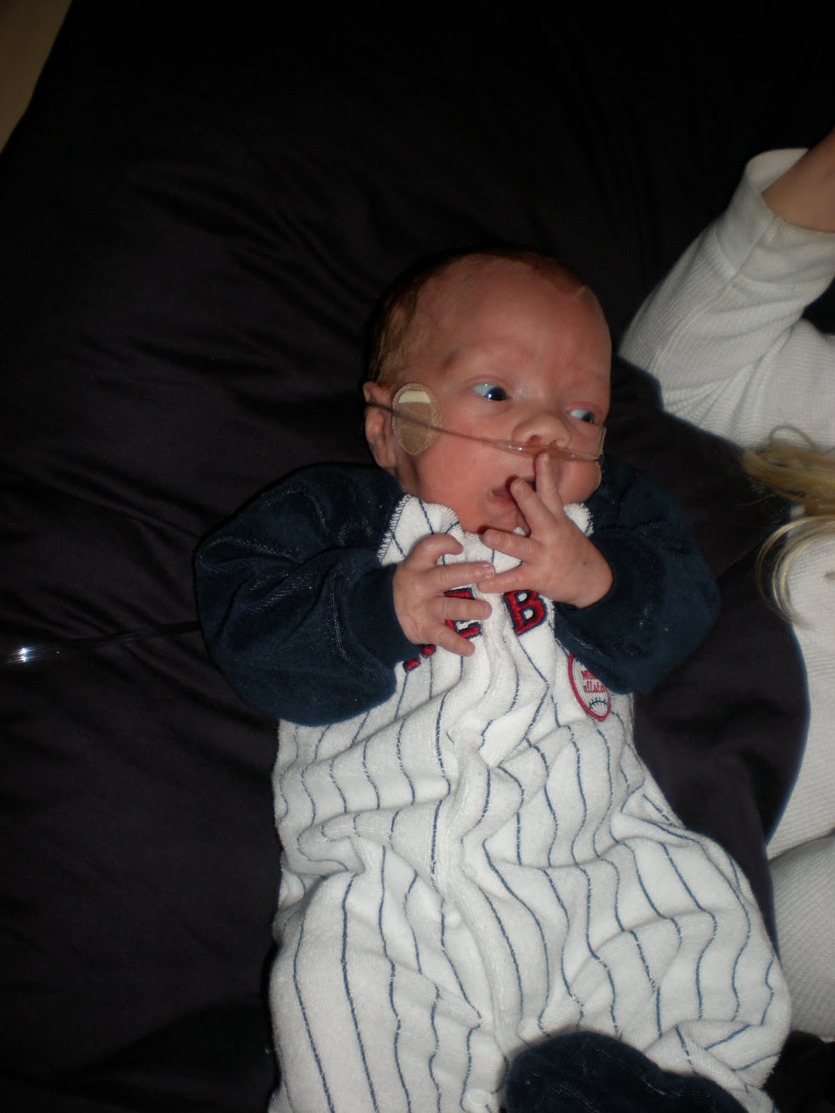 There were times I recall watching him getting poked and prodded and struggling to just breath that it put my “stomach on fire” pain to shame. The first time I heard his hoarse little cry was the most bittersweet moment in my life. He had been on a ventilator so long (they can’t make audible noise on a vent) that when he finally came off it his little voice was so hoarse. The first time I heard that hoarse little cry I literally had to grip the side of his isolette, turn my head, and squeeze my eyes shut to bear the stabbing pain it brought to my heart. The physical and emotional pain it brings to your heart watching your little baby suffer knowing there is nothing I can do is indescribable. There were more than a few times especially in the beginning it took everything I had not to rip all the wires and tubes out of him and take him and run. It was so difficult knowing if I did that he would die that, that horrible plastic tube going down his throat and all the wires, needles and beeping machines as awful as they seemed were keeping him alive.